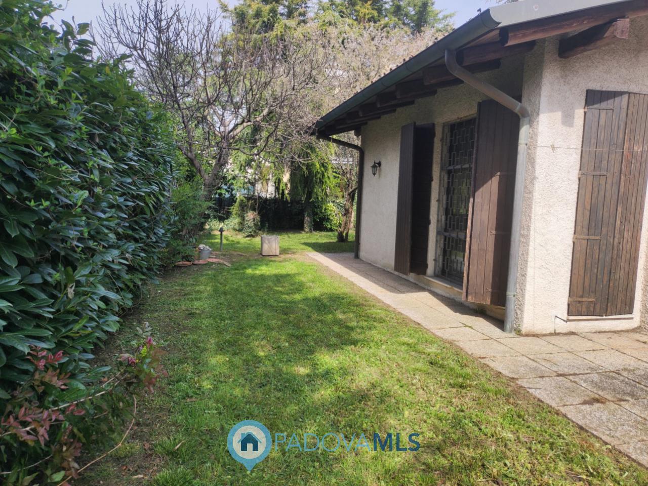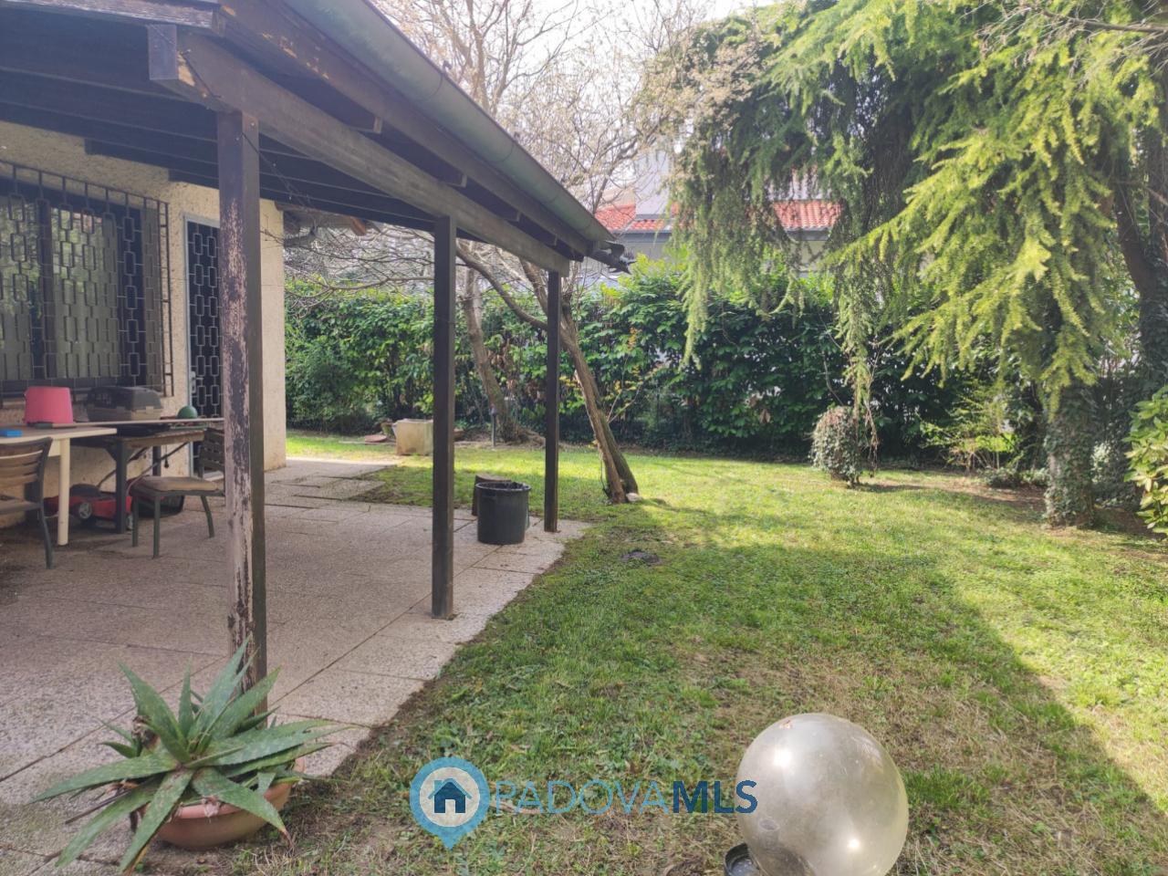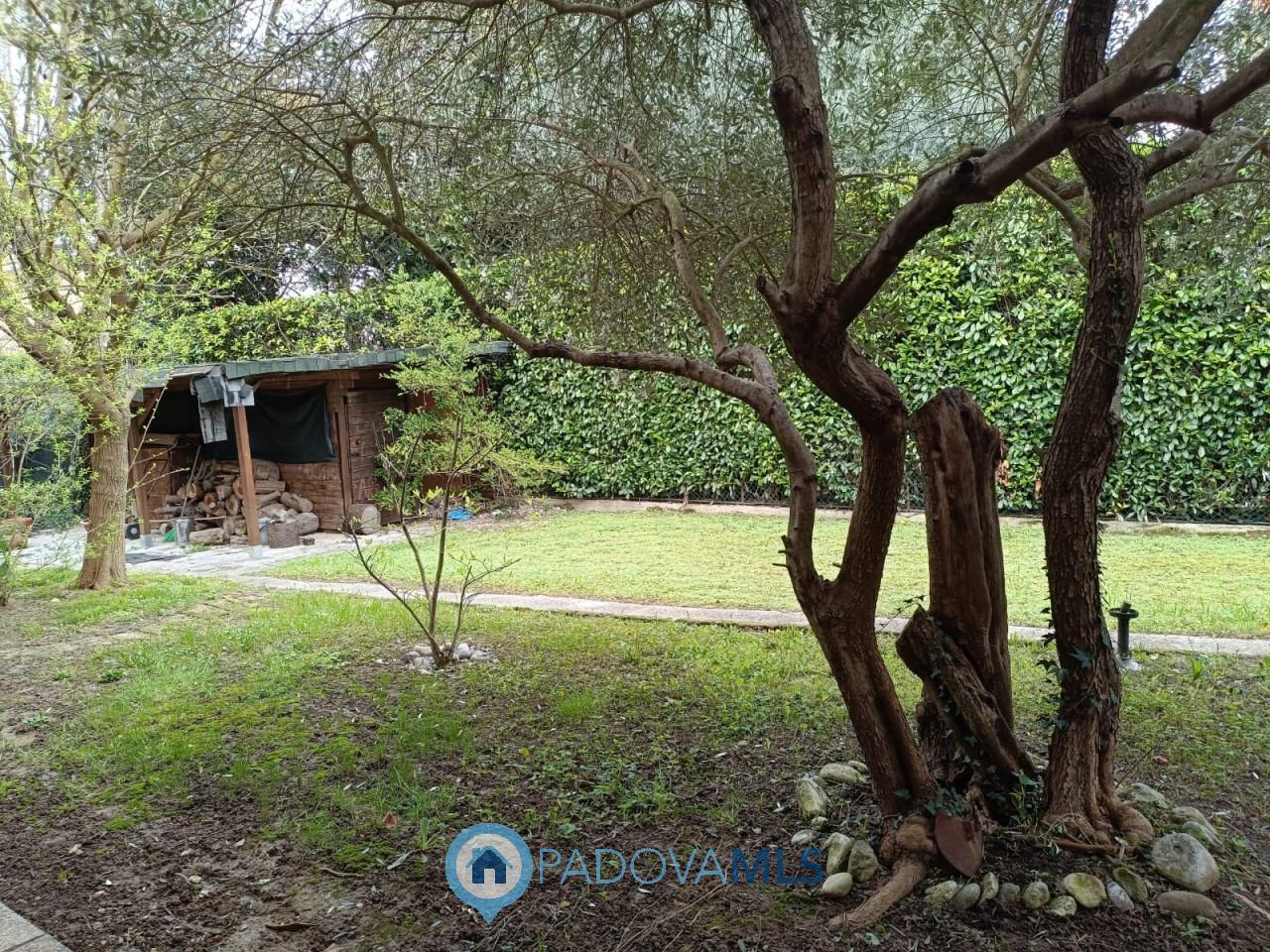 Selvazzano Dentro – nel quartiere centrale di Tencarola in ottimo contesto abitativo, comodo a tutti i servizi ma in posizione tranquilla e riservata, interessante porzione di bifamiliare di circa 245mq con ampio giardino privato di oltre 300mq . La casa ha una architettura molto originale con pavimento del soggiorno a doppia altezza ed alti soffitti con travatura in legno. Si sviluppa al piano terra un ampio ingresso che conduce alla zona giorno open space di oltre 50 mq con caminetto a legna e cucina in una nicchia (eventualmente separabile). Dalla zona giorno si esce su uno splendido portico ideale per momenti di tranquillità o per intrattenersi con ospiti e amici. Sempre al piano terra si trova una camera matrimoniale, un bagno finestrato (ristrutturato nel 2004), la zona lavanderia con il pratico accesso direttamente all’esterno, ed un ulteriore studio. Salendo al piano primo con la scala interna si arriva al reparto notte attualmente composto da un ampio disimpegno che prende luce da una vetrata che dà sul giardino , 3 camere ( una matrimoniale, una doppia e una singola) ed altri 2 bagni finestrati.